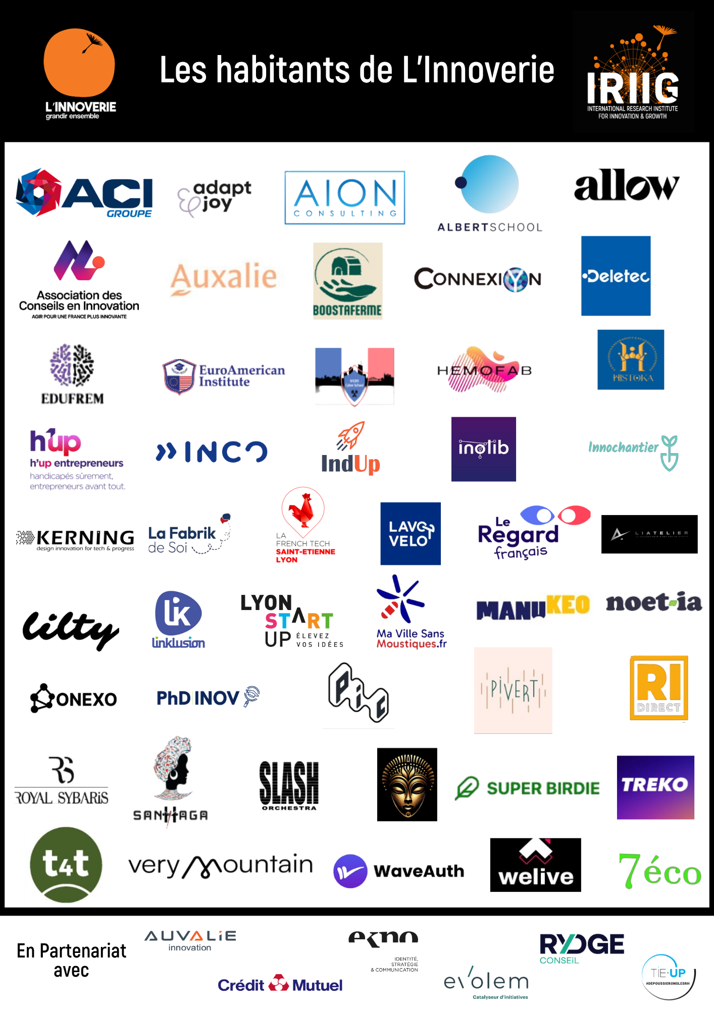 Nous sommes installés au sein du campus/tiers lieu d'IRIIG, le II, qui héberge de nombreux acteurs reconnus de l’Innovation, de l’Impact, de la Tech et de l’Entrepreneuriat dont notamment LYON START UP, GREENPACT, H’Up, INCO, Tech 360 ou encore WAOUP.
