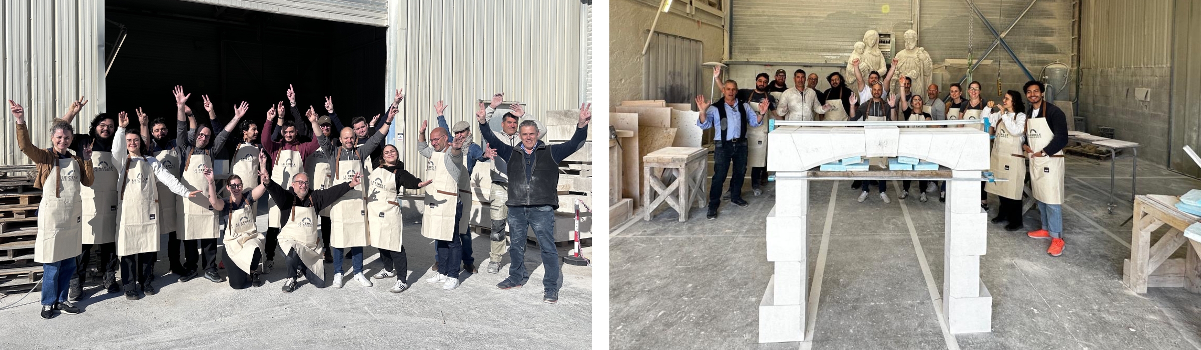 Après une pause déjeuner partagée au cœur de l’atelier, l’après-midi a été consacré aux finitions. Chaque participant a ajusté sa pierre et y a apposé sa signature, marquant son engagement dans l’œuvre collective.