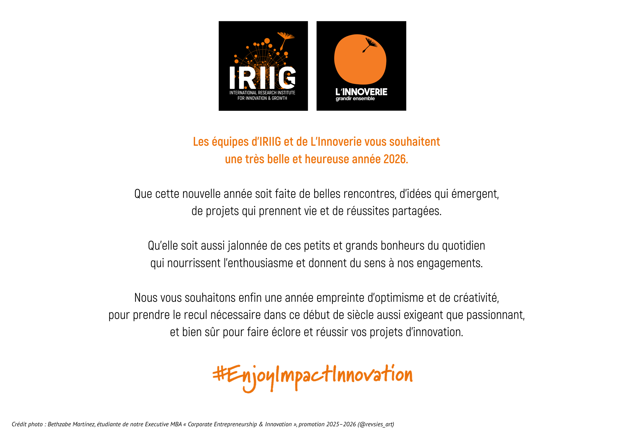 Je vous souhaite à toutes et à tous une très belle année 2026, et j’espère que vous trouverez chacun la clé de votre réussite, tant personnelle que professionnelle.