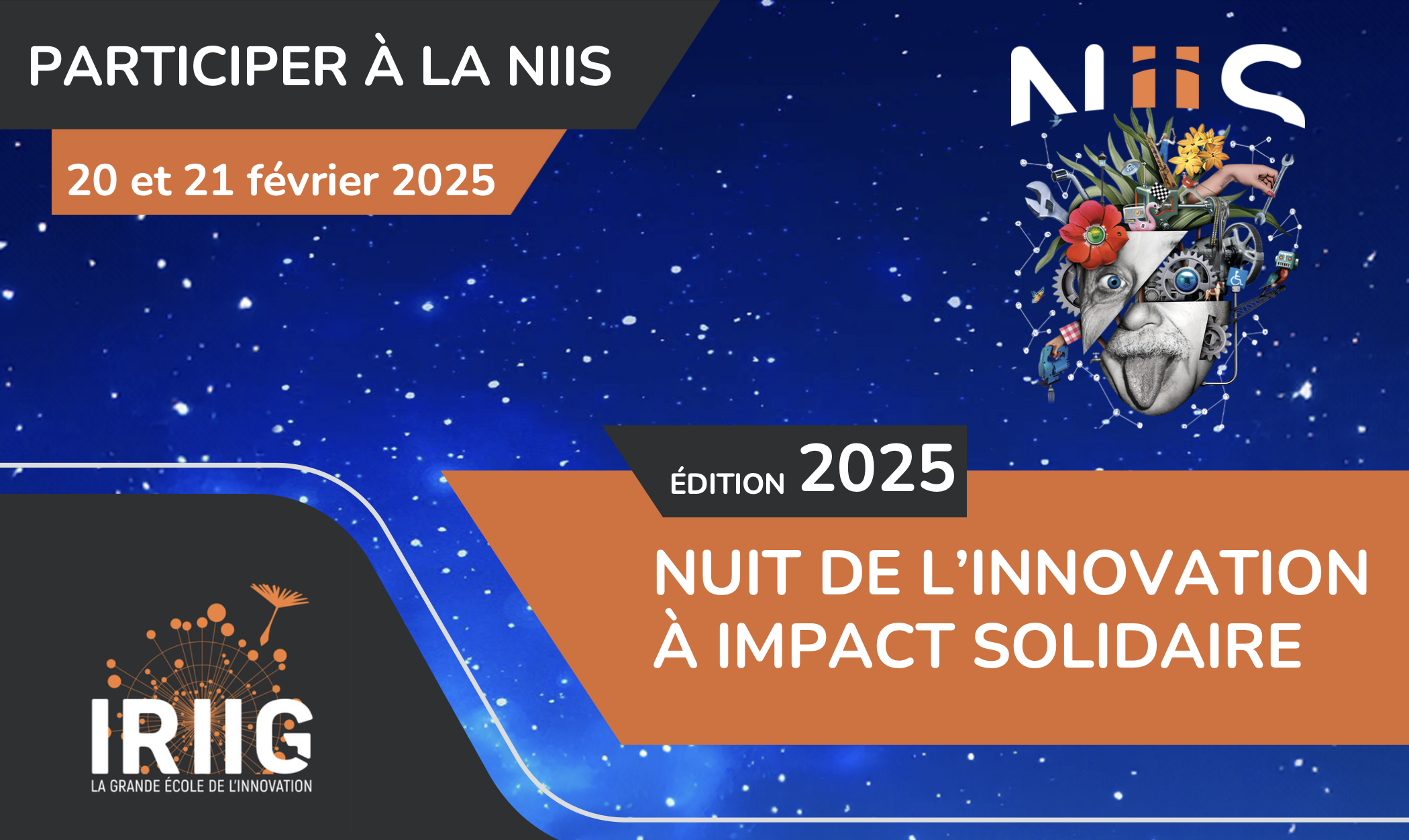 La Nuit de l’Innovation à Impact Solidaire (NIIS) revient pour une 6e édition explosive ! Rejoins 130 étudiants venus de tous horizons pour un marathon de créativité et de fun, au service de causes qui comptent vraiment. Et si toi aussi, tu devenais acteur du changement ?